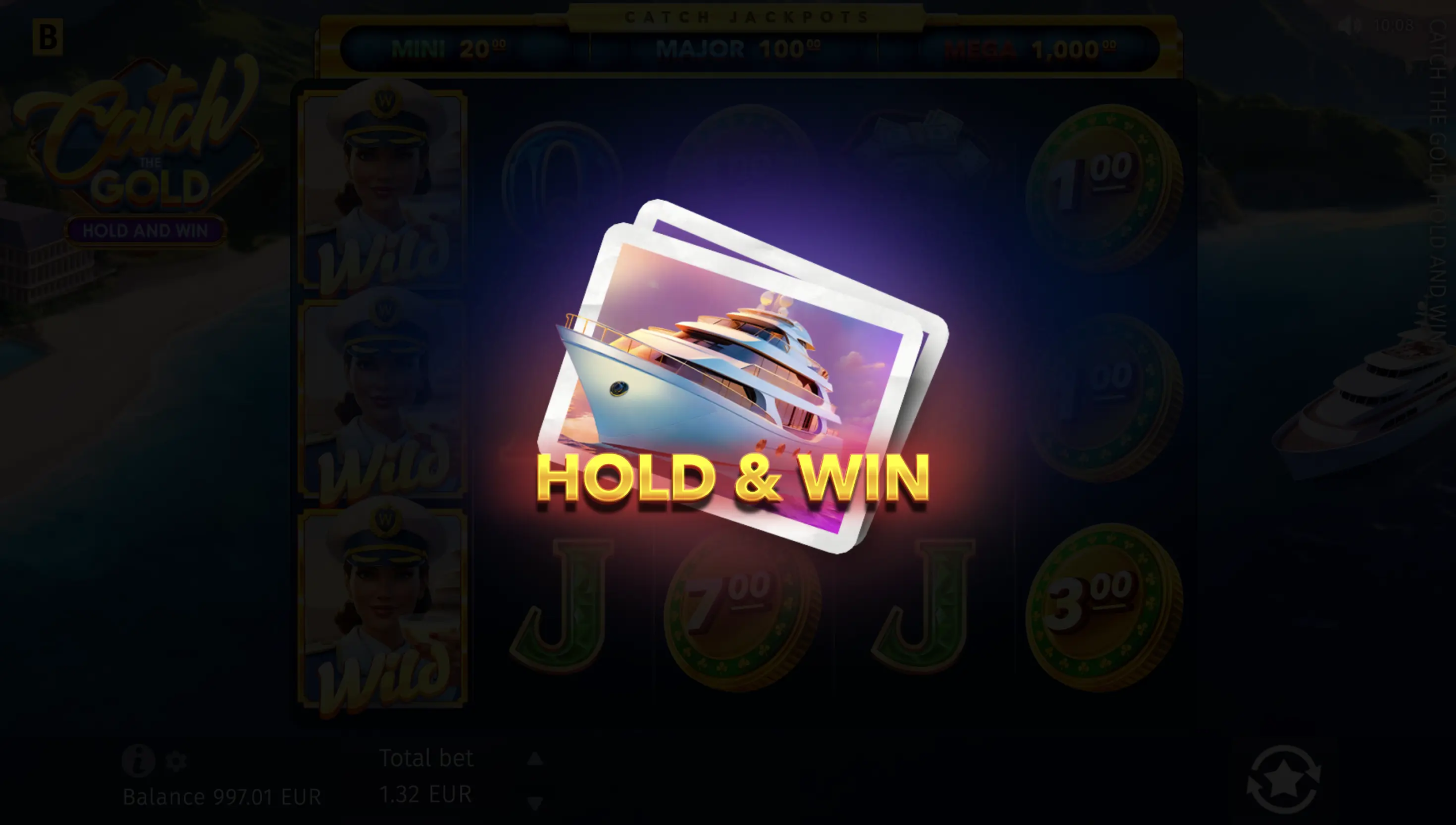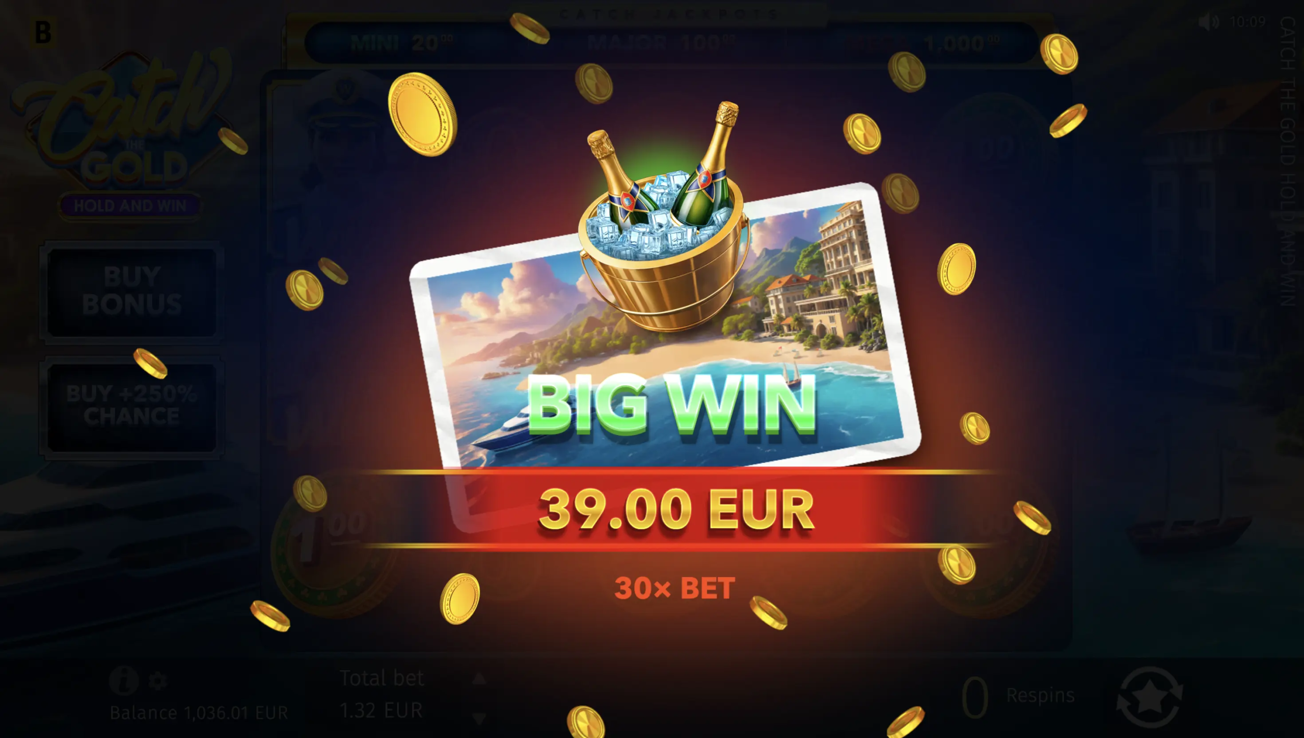 Qual é a maior vitória disponível em Catch the Gold Hold and Win?