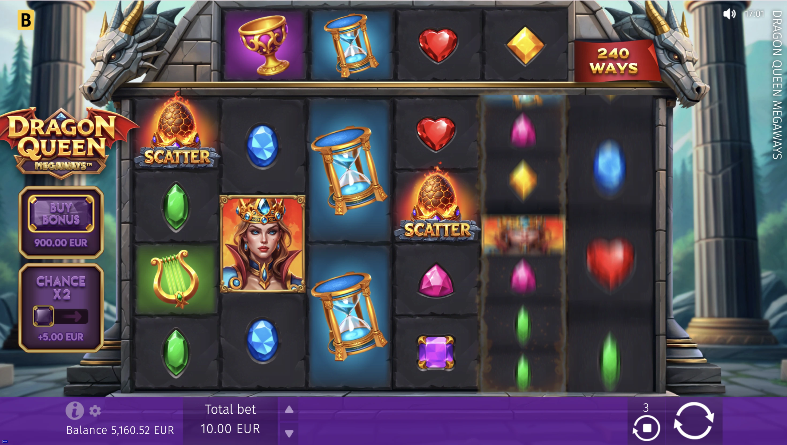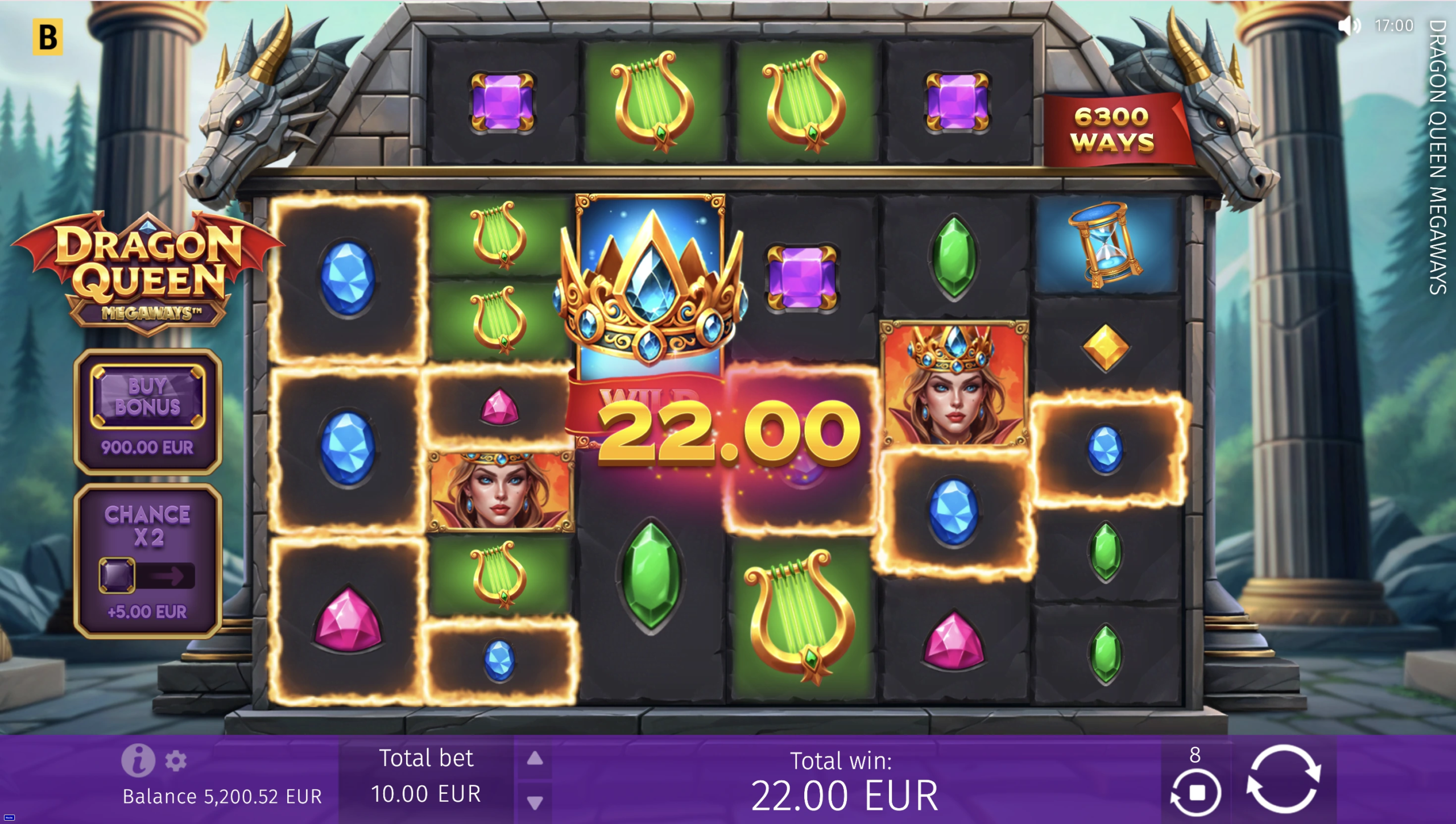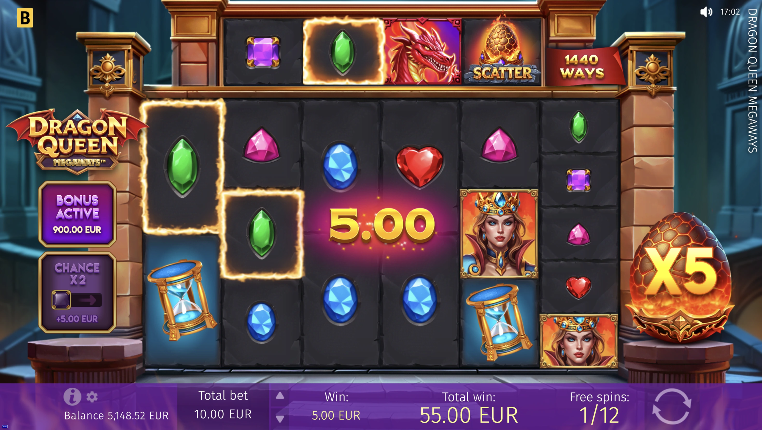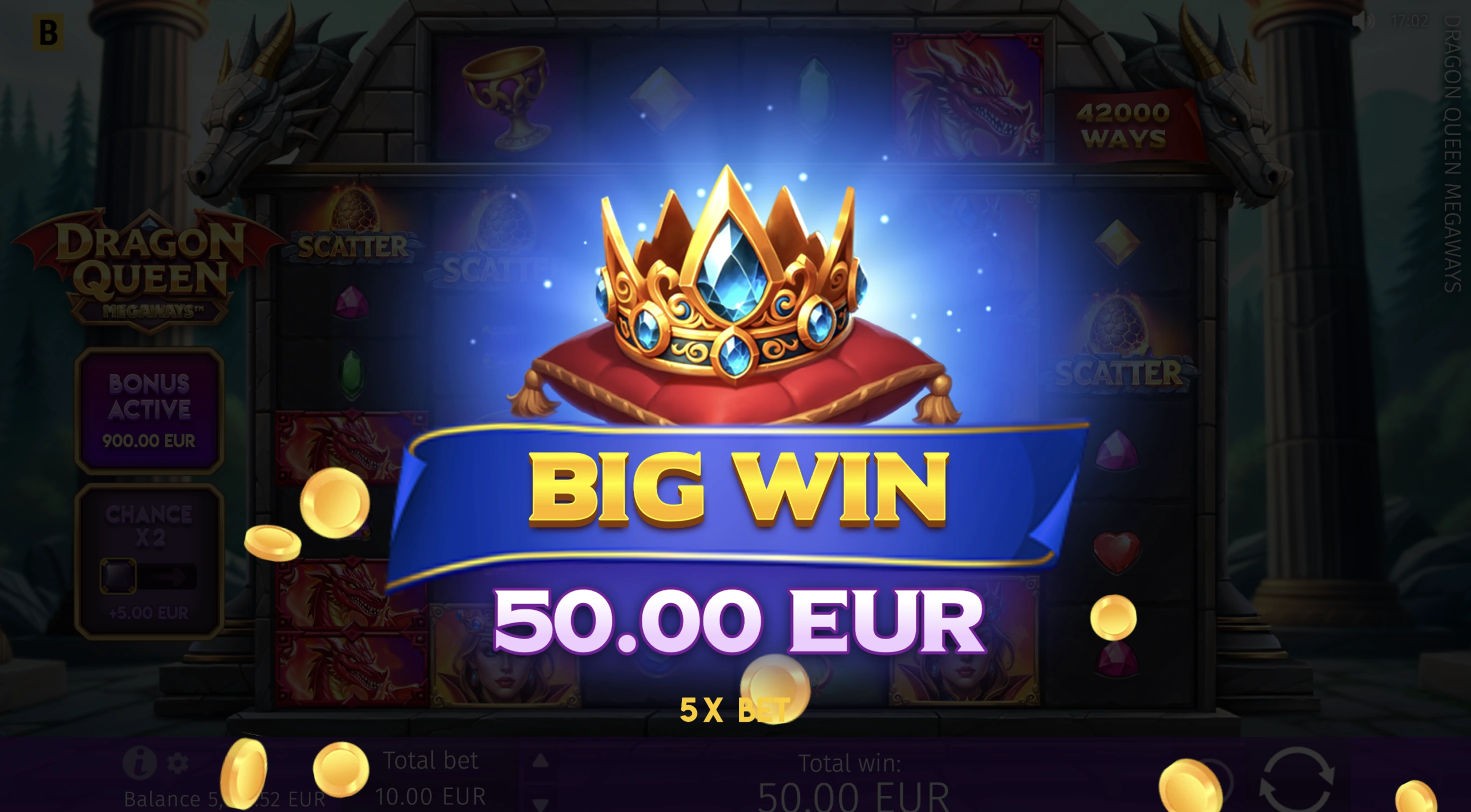 Proudly spin the MEGAWAYS™ battle reels, accepting the Dragon Queen’s call for help. Collect wins boosted by x2 crown Wilds and feel the heat of real action get even more intense in the Free Spins round with randomly generated 5–15 free spins that offer one x2–x25 multiplier for all Bonus game wins. Defend Her Majesty’s honor and reap her generous rewards!
