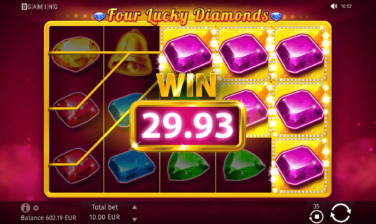 Four Lucky Diamonds is truly a brilliant slot in BGaming’s portfolio. Simple yet exquisite, it is going to be loved by both ladies and gentlemen!