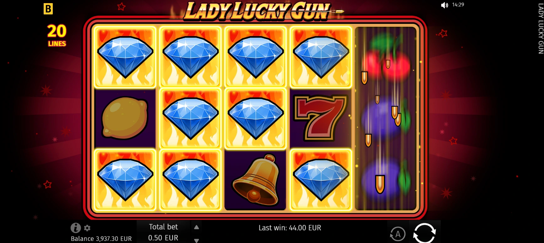 Uma trilha sonora divertida e um design retrô suculento dão as boas-vindas aos jogadores em um simples jogo de caça-níqueis 5 × 3, convidativo a uma jogabilidade estratégica em 20 linhas. Junte-se à incrível espiã secreta Lady Lucky Gun na ação de Expanding Wild e faça companhia a ela nas rodadas 2 a 4, com possíveis vitórias em cadeia!