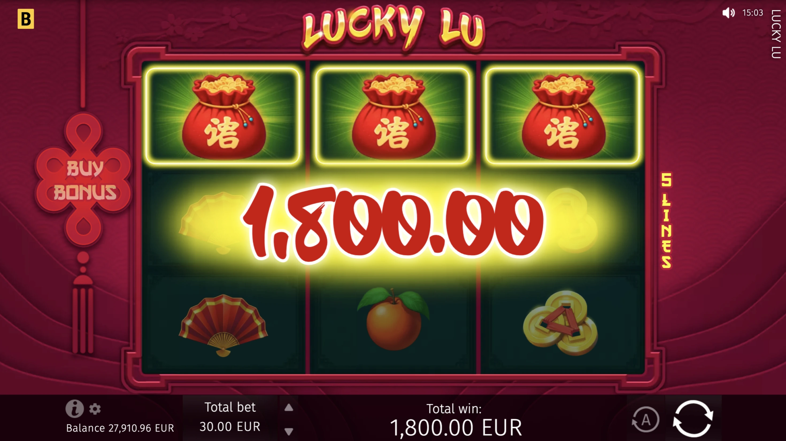 Lucky Lu oferece aos jogadores grandes oportunidades de vitória de até 5×559 de sua aposta, com a vitória máxima possível no jogo de bônus simples e rápido.