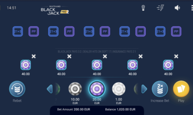 It’s time for a fresh take on blackjack! Designed to prevent unnecessary distractions and enhance your focus on strategy, the Multihand Blackjack Pro 2 game from BGaming offers 5 main hands with 21+3 and Perfect Pair side bets available for each. The handy Hints and Turbo mode you can enable with a click complete this modern card game package.