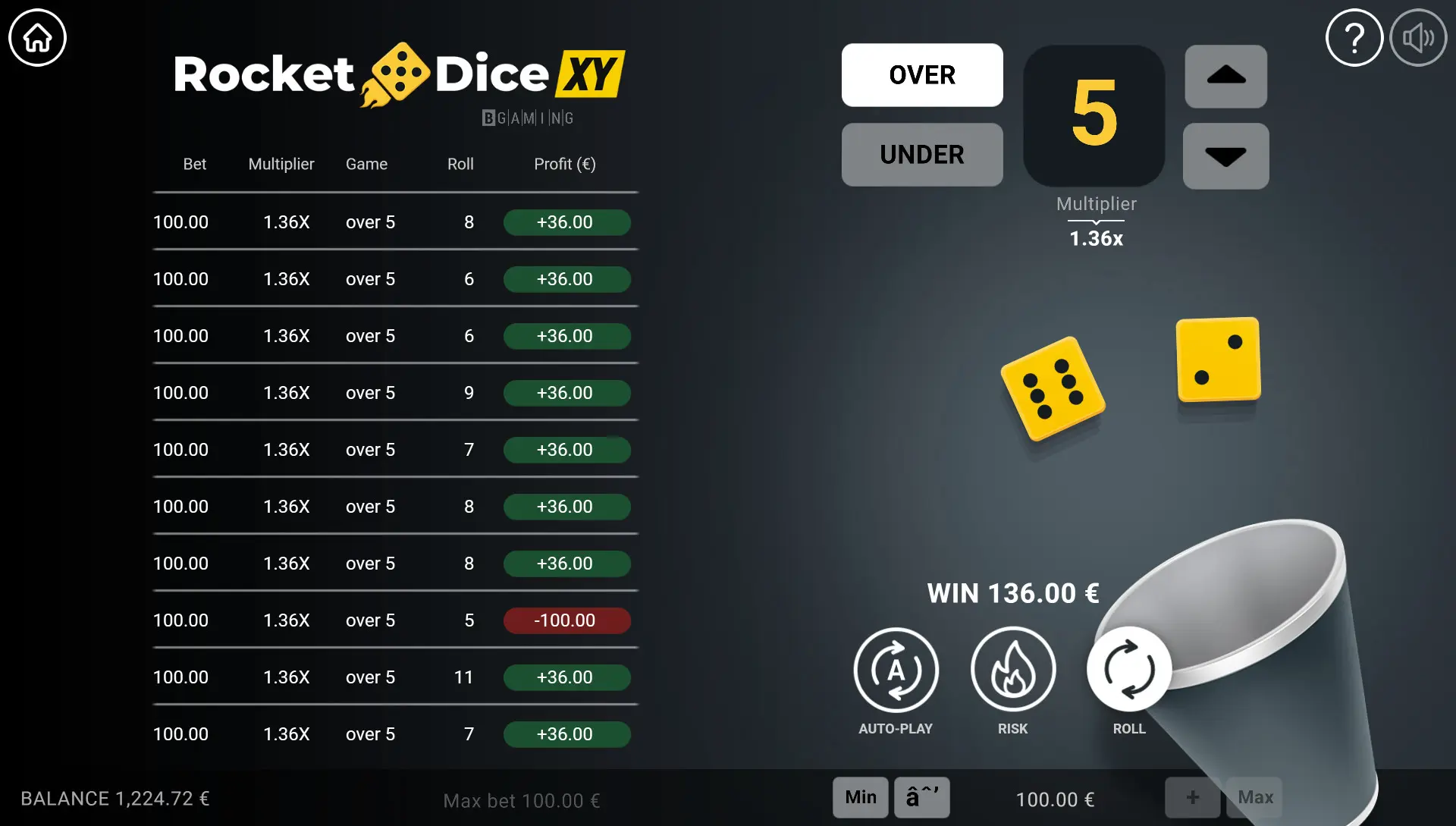 Qual é a maior vitória disponível no Rocket Dice XY?