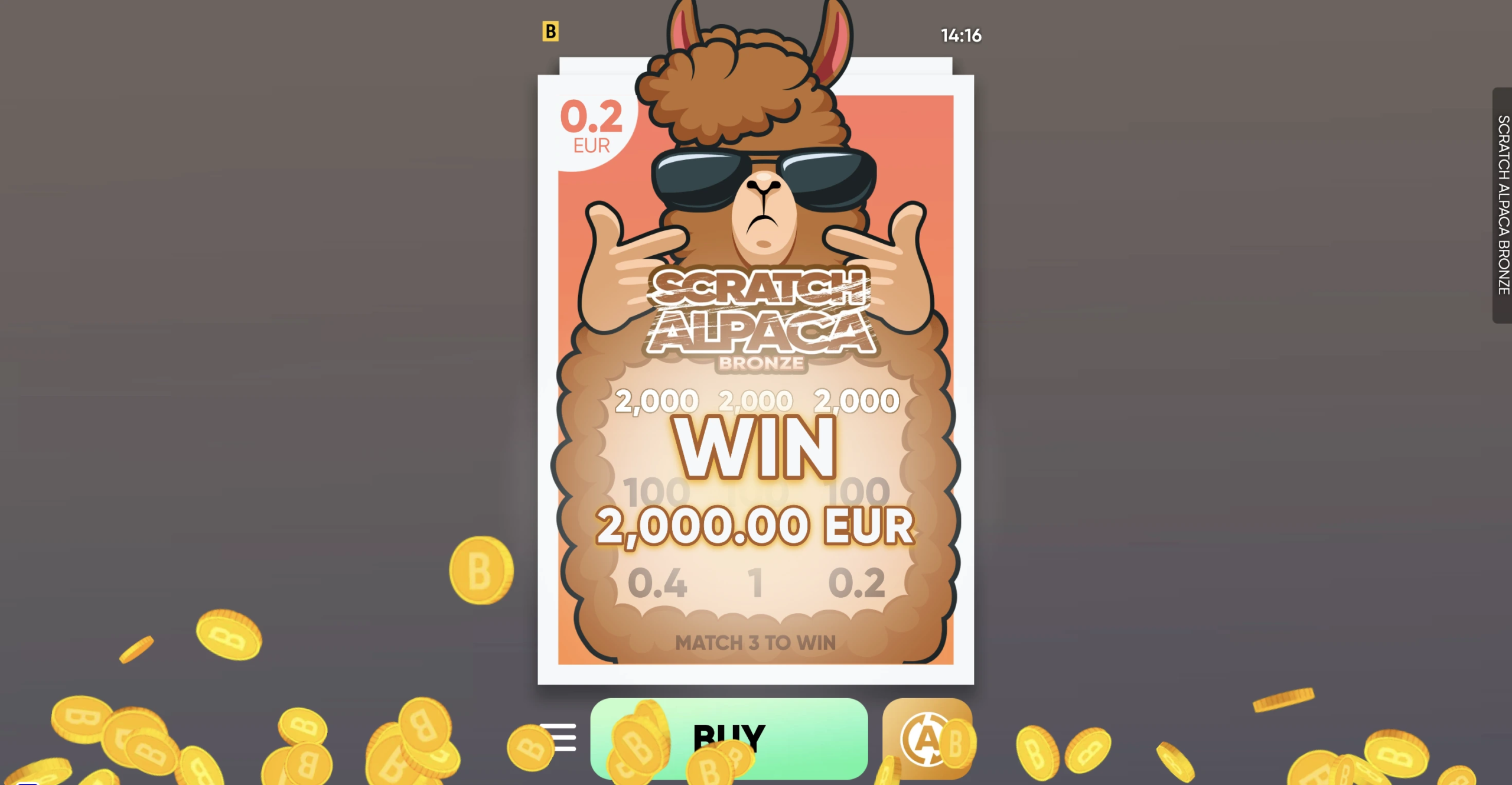 Our Bronze Scratch Alpaca marks the third edition in the BGaming pack of instant-win games, alongside the Gold and Silver titles. Simply scratch off nine cells on your lucky card, and you win if you match 3 values!