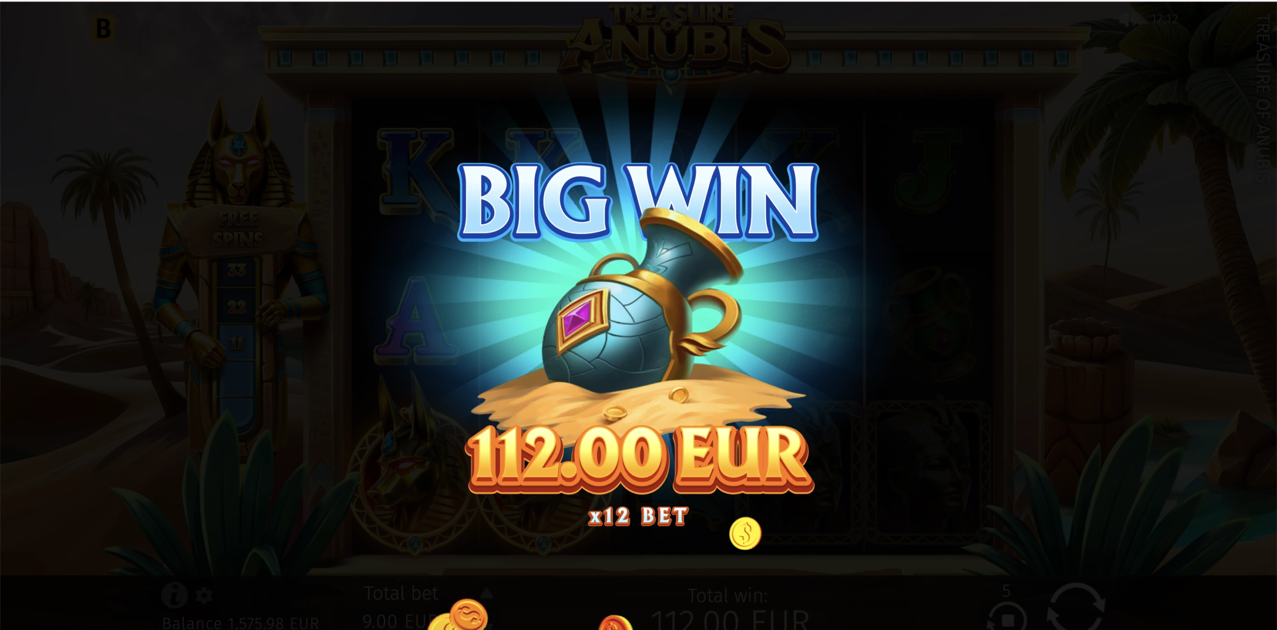 Qual é a maior vitória disponível em Treasure of Anubis?