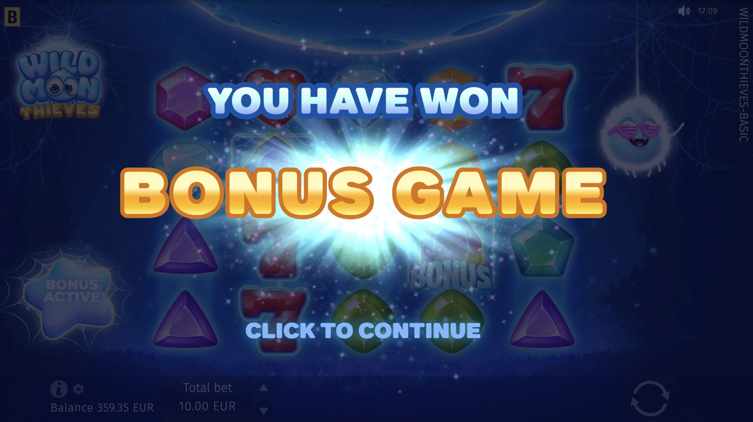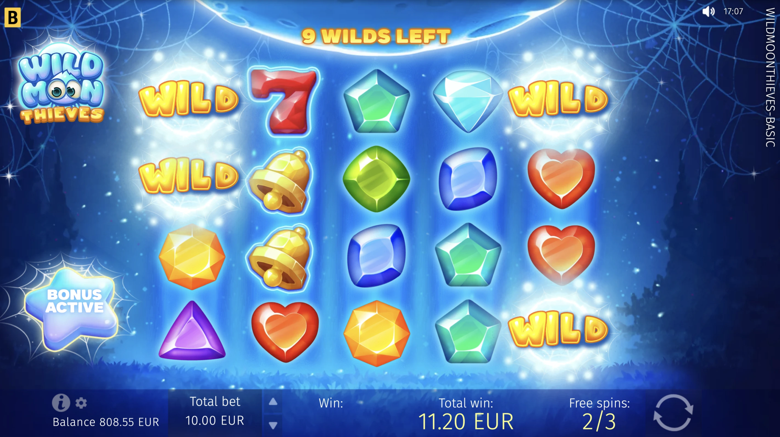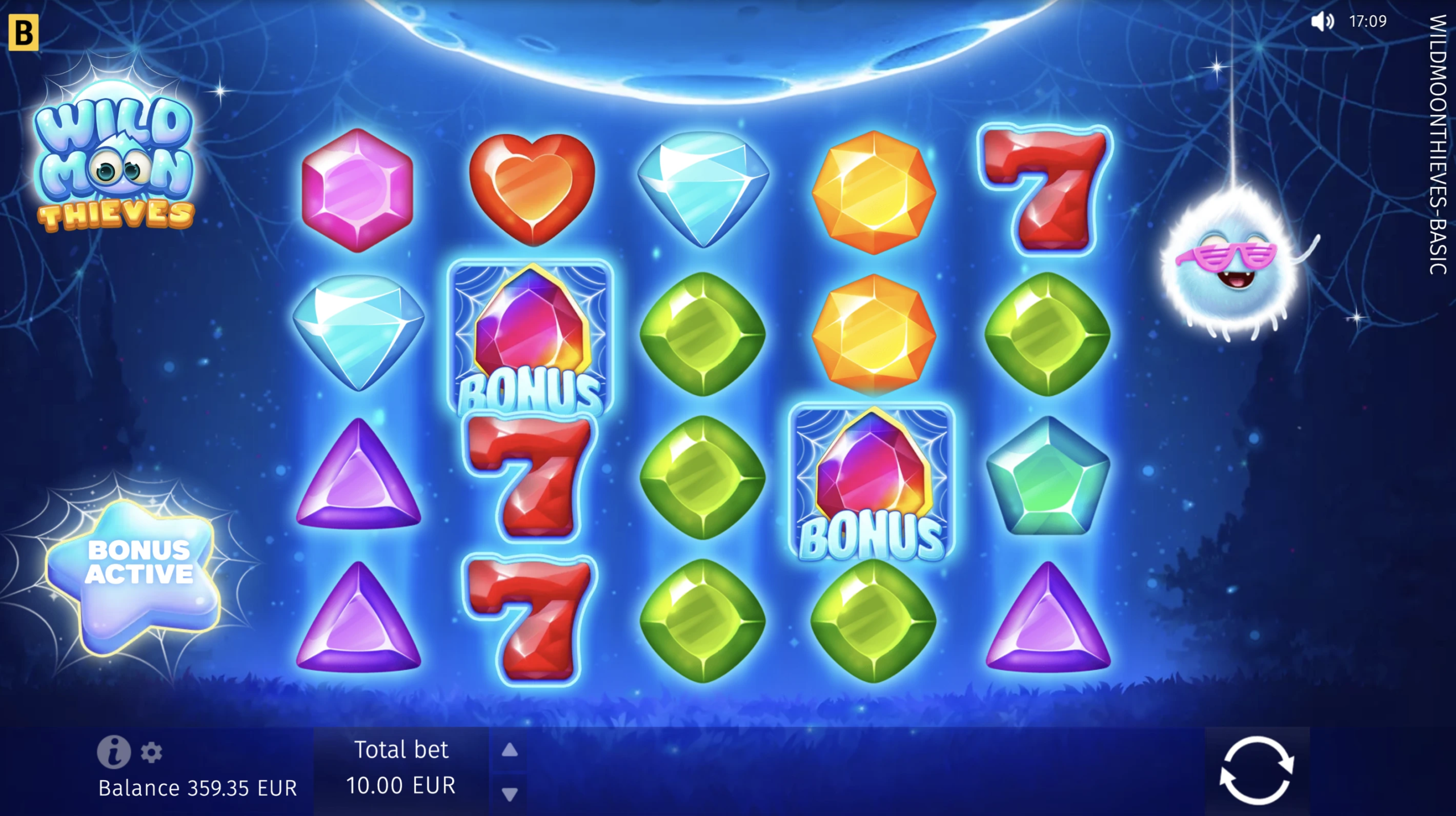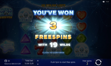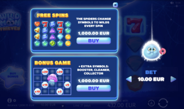 Join the company of magical Wild Moon spiders and revel in joy as they surprise you by generously replacing shining gems, sevens, and golden bells with Wild web symbols! Play Free Spins with Wild showers for every spin and try the Hold and Win–style Bonus game, collecting Moon Multipliers for stellar payouts. An over-the-moon slot game experience is at your fingertips!