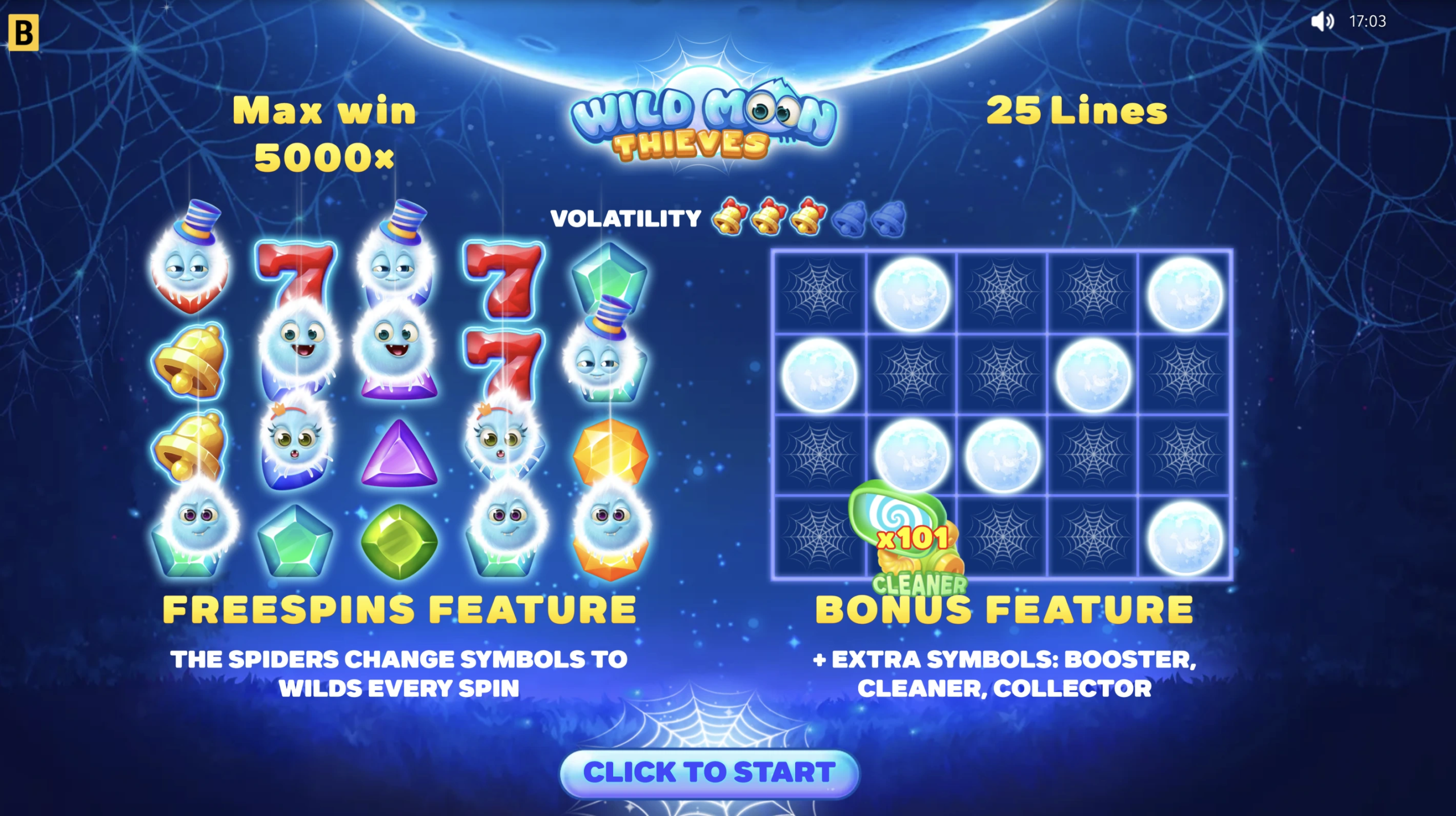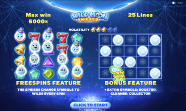 Wild Moon Thieves allows players to win up to 5,000 times their stake. This game is perfect for those seeking a light-hearted slot experience with decent winning potential and an enjoyable design.