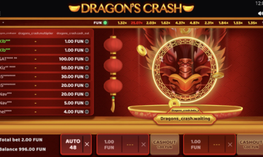 Em Dragon’s Crash, os jogadores podem obter vitórias substanciais, com o jogo oferecendo um pagamento máximo de até x10.000 de sua aposta, aumentando a emoção de cada rodada.