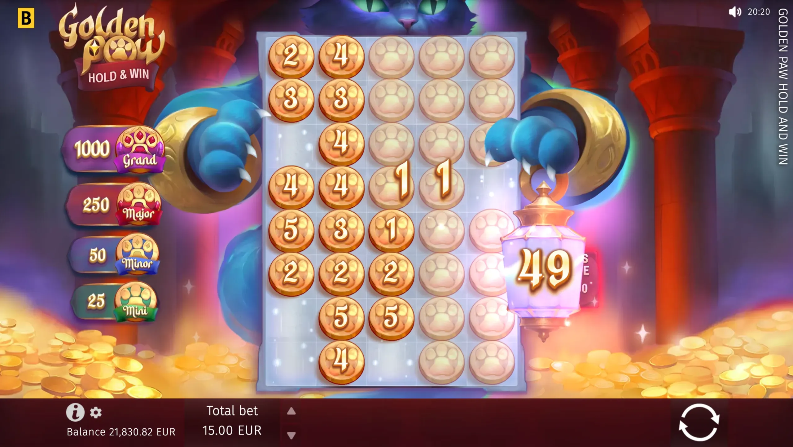 O maior prêmio no Golden Paw Hold & Win pode chegar a x2.000 da aposta do jogador. Os jogadores têm o potencial de obter pagamentos significativos, dependendo do tamanho de sua aposta.