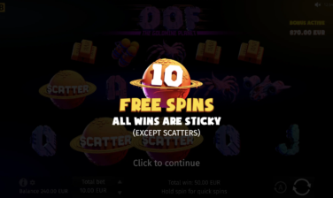 This cosmic 5×3 slot showcases galaxy symbols, including Wilds and Scatters that trigger free spins. In the Bonus game, all winning symbols become Sticky and pay on each following spin until the round’s end. The Bonus Buy feature lets players activate these unique free spins immediately.