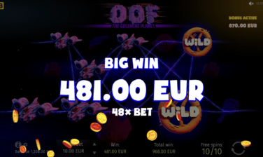 OOF offers players the chance to win up to 5,000 times their initial stake, providing substantial payout opportunities through its exciting and innovative gameplay.