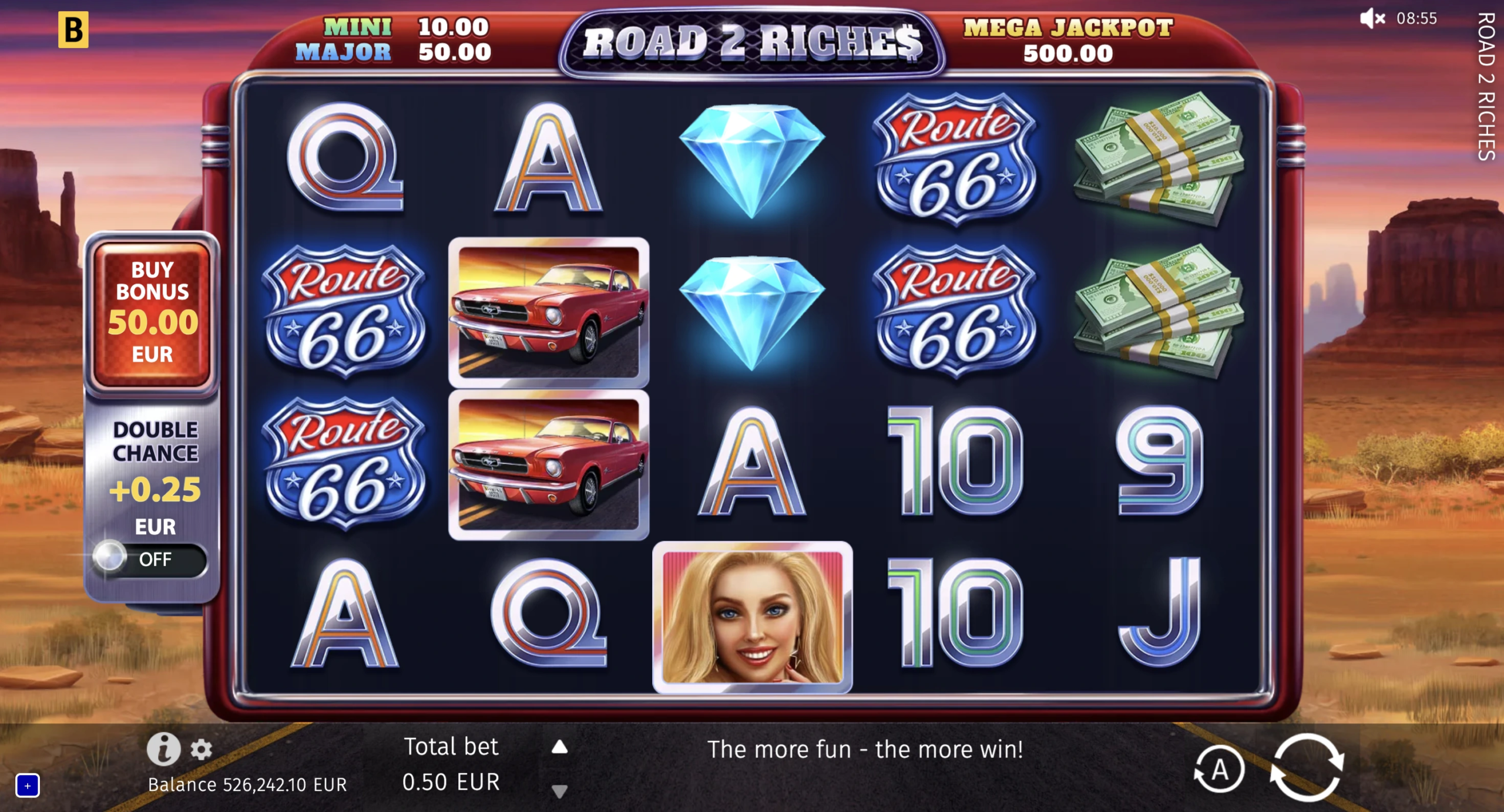 Road 2 Riches oferece aos jogadores a oportunidade de ganhar até 2.000 vezes sua aposta. Com uma variedade de recursos de bônus e jogabilidade dinâmica, este jogo oferece um potencial de vitória significativo, tornando cada rodada uma aventura emocionante.