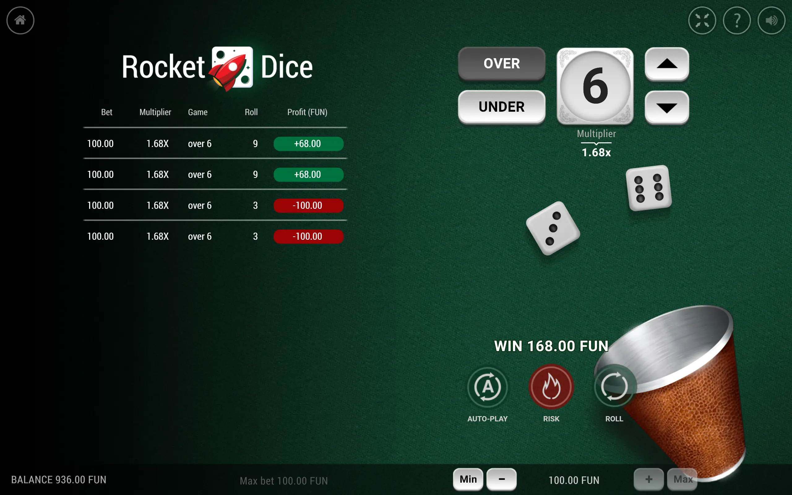 Qual é a maior vitória disponível no Rocket Dice?