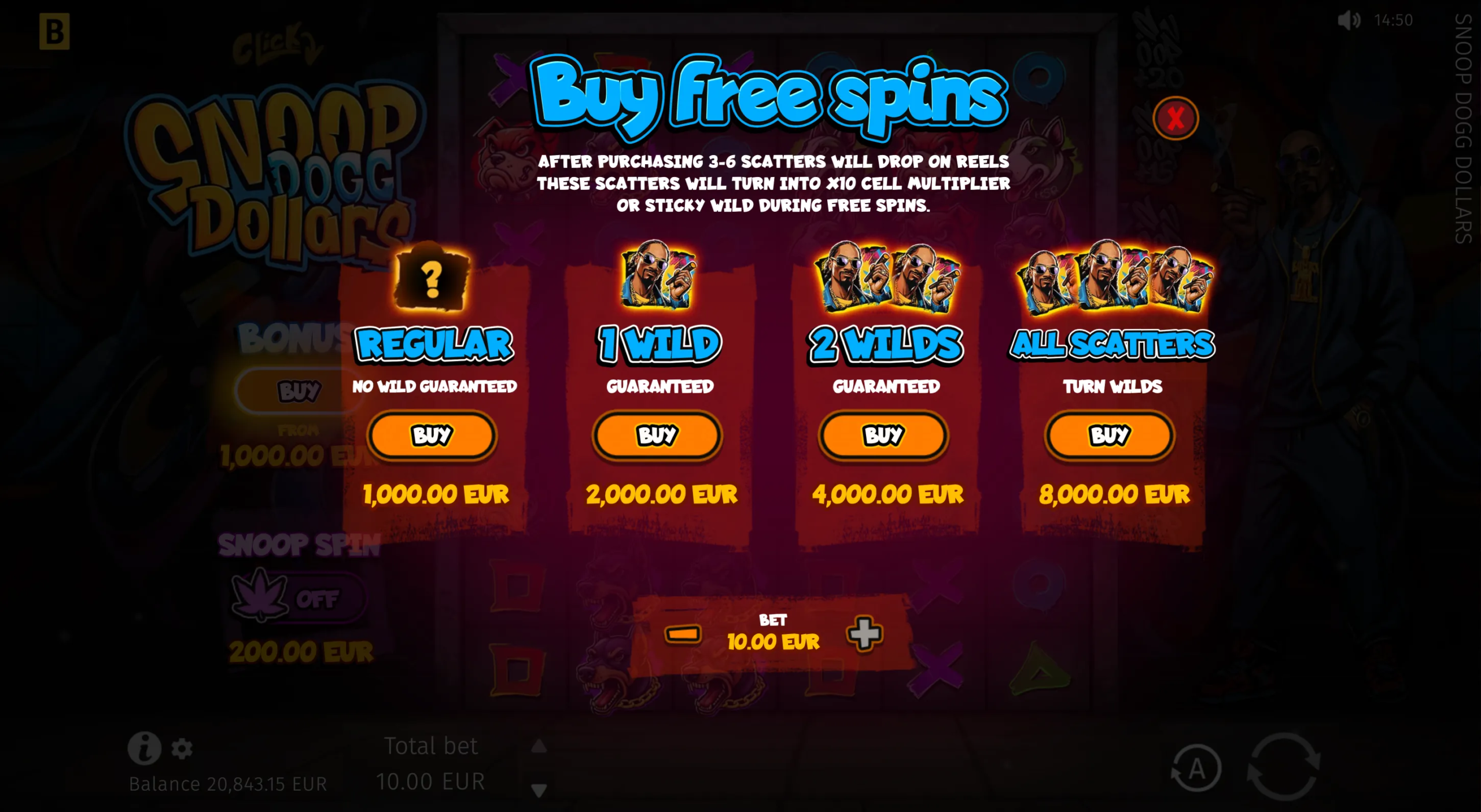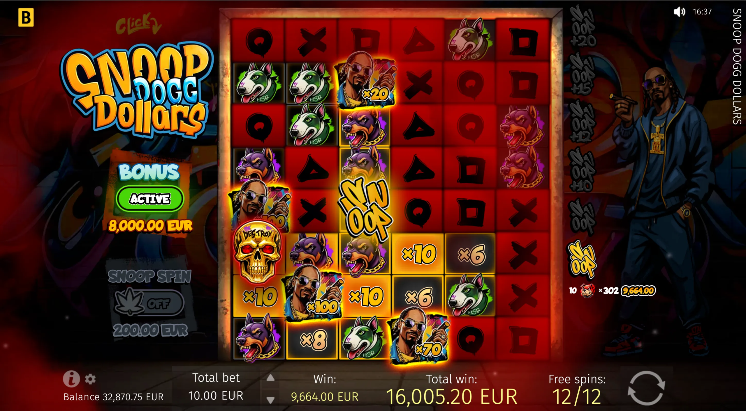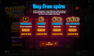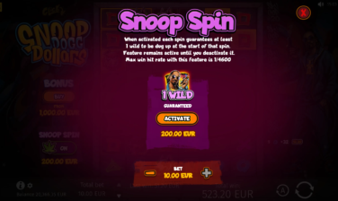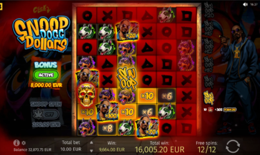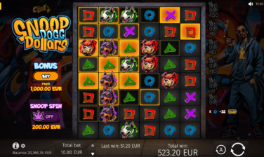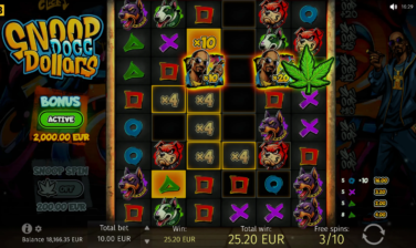 Snoop Dogg Dollars has a maximum multiplier of x10,000 of the player’s bet and can lead players to gratifying big wins that the iconic rapper himself announces in the game as relevant pop-ups appear.