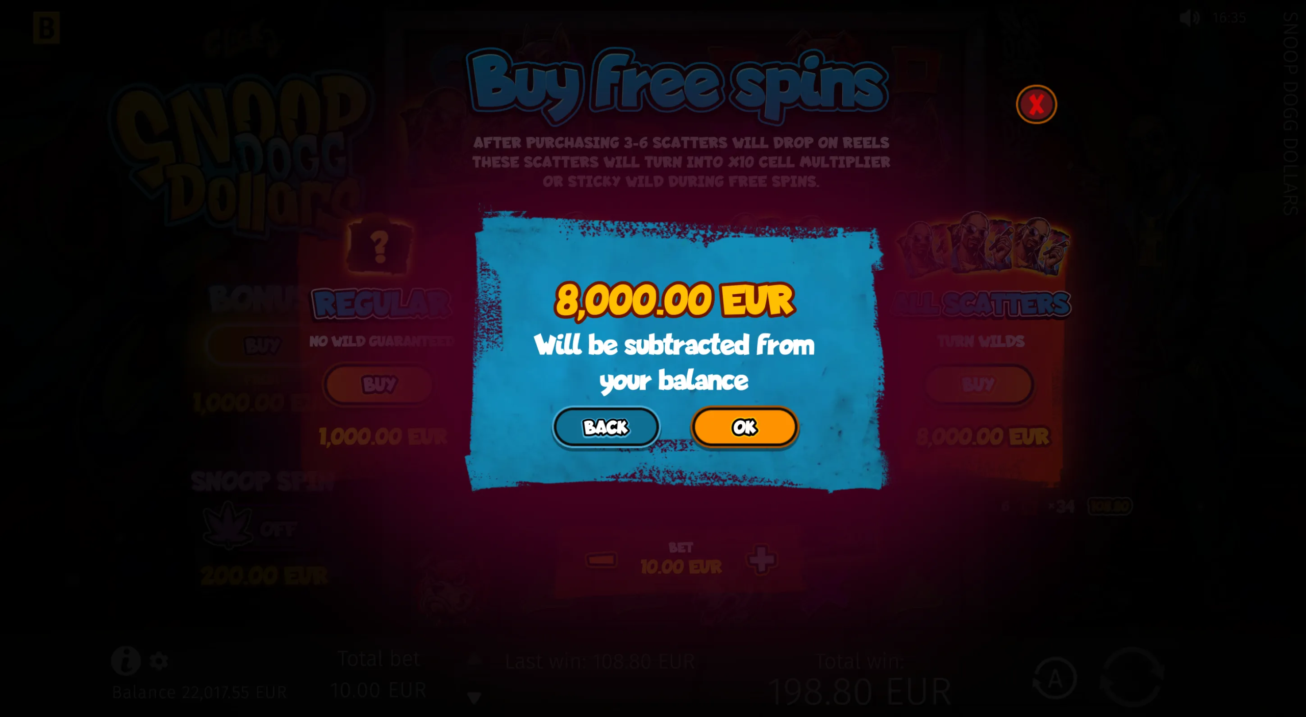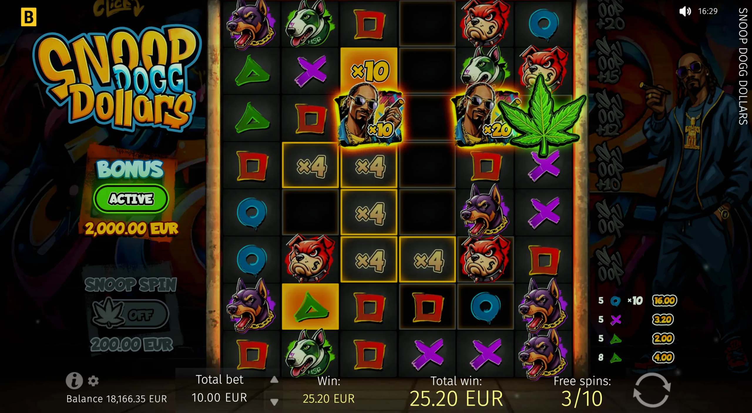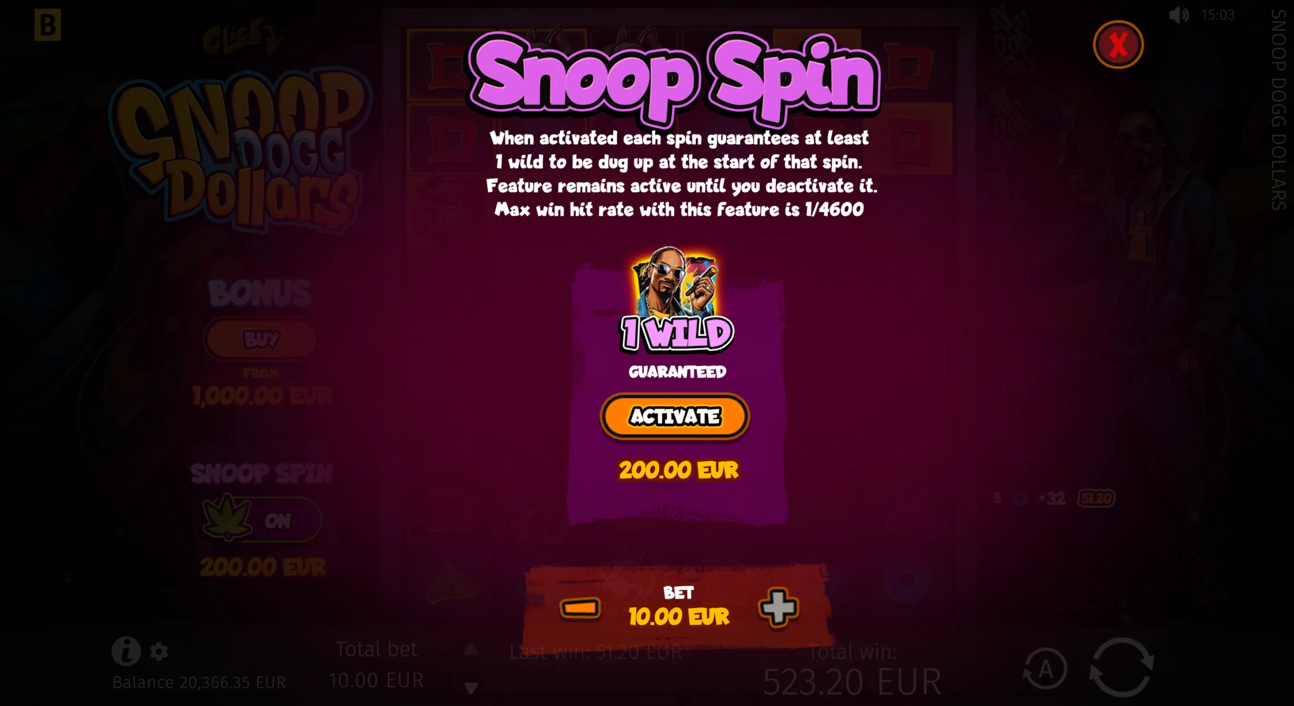 Snoop Dogg Dollars has a maximum multiplier of x10,000 of the player’s bet and can lead players to gratifying big wins that the iconic rapper himself announces in the game as relevant pop-ups appear.