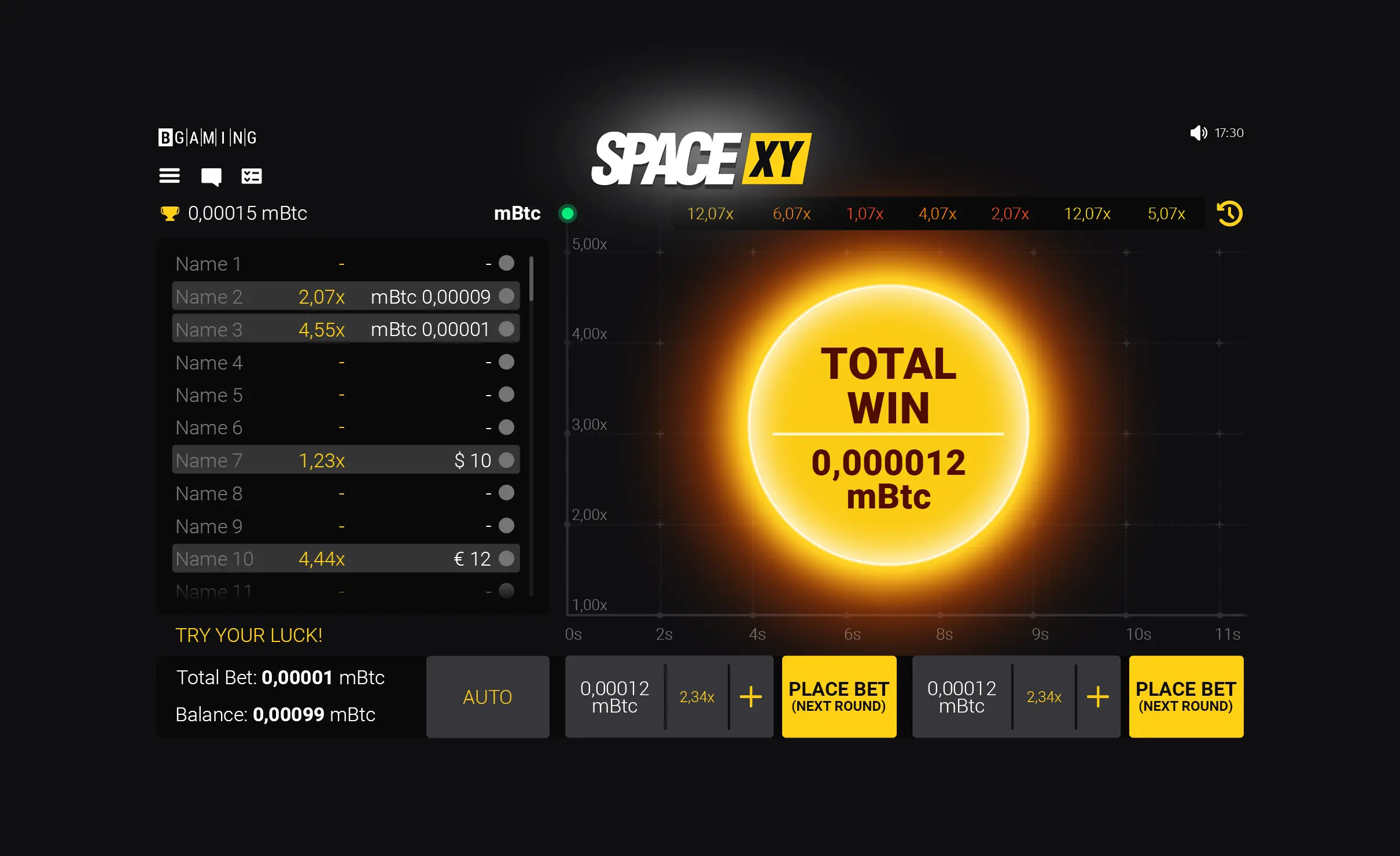 It’s time to soar to new heights with BGaming! Launching the rocket to the stars means getting incredible winnings! Space XY is an exciting game with easy gameplay. Don’t hesitate to join a breathtaking ride to the stars and make a fortune.