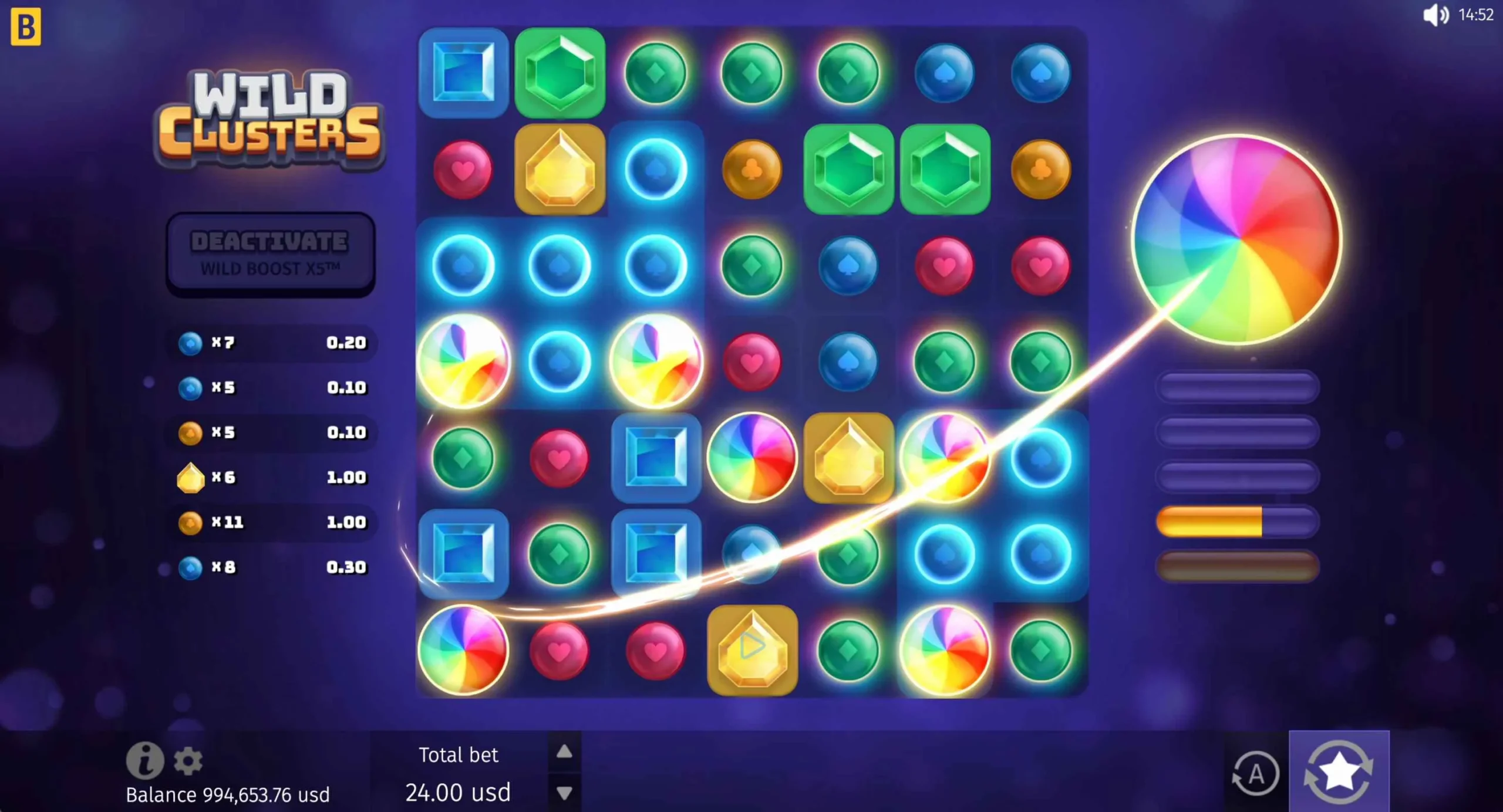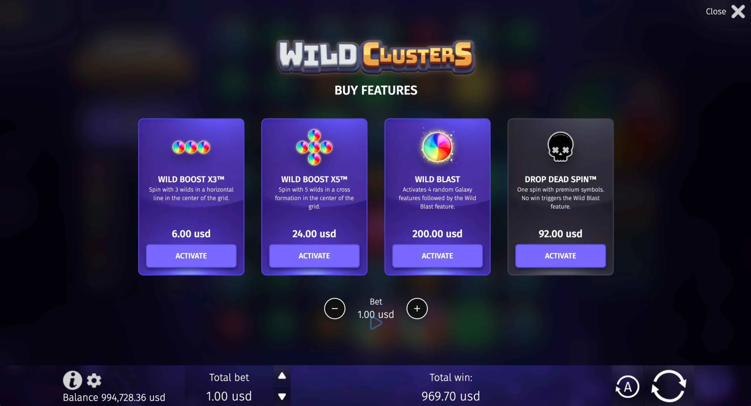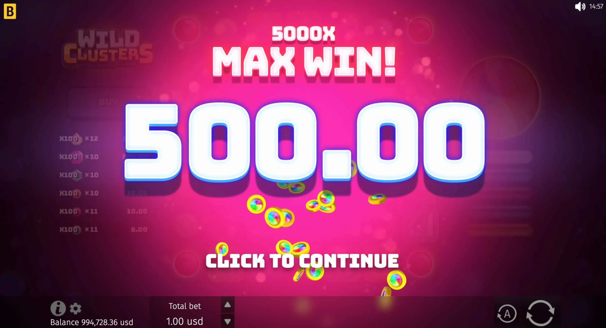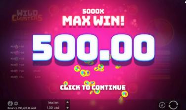 Wild Clusters offers a maximum multiplier of x5,000 of a player’s bet. The big win can be quite rewarding, depending on the player’s initial stake and feature progress.