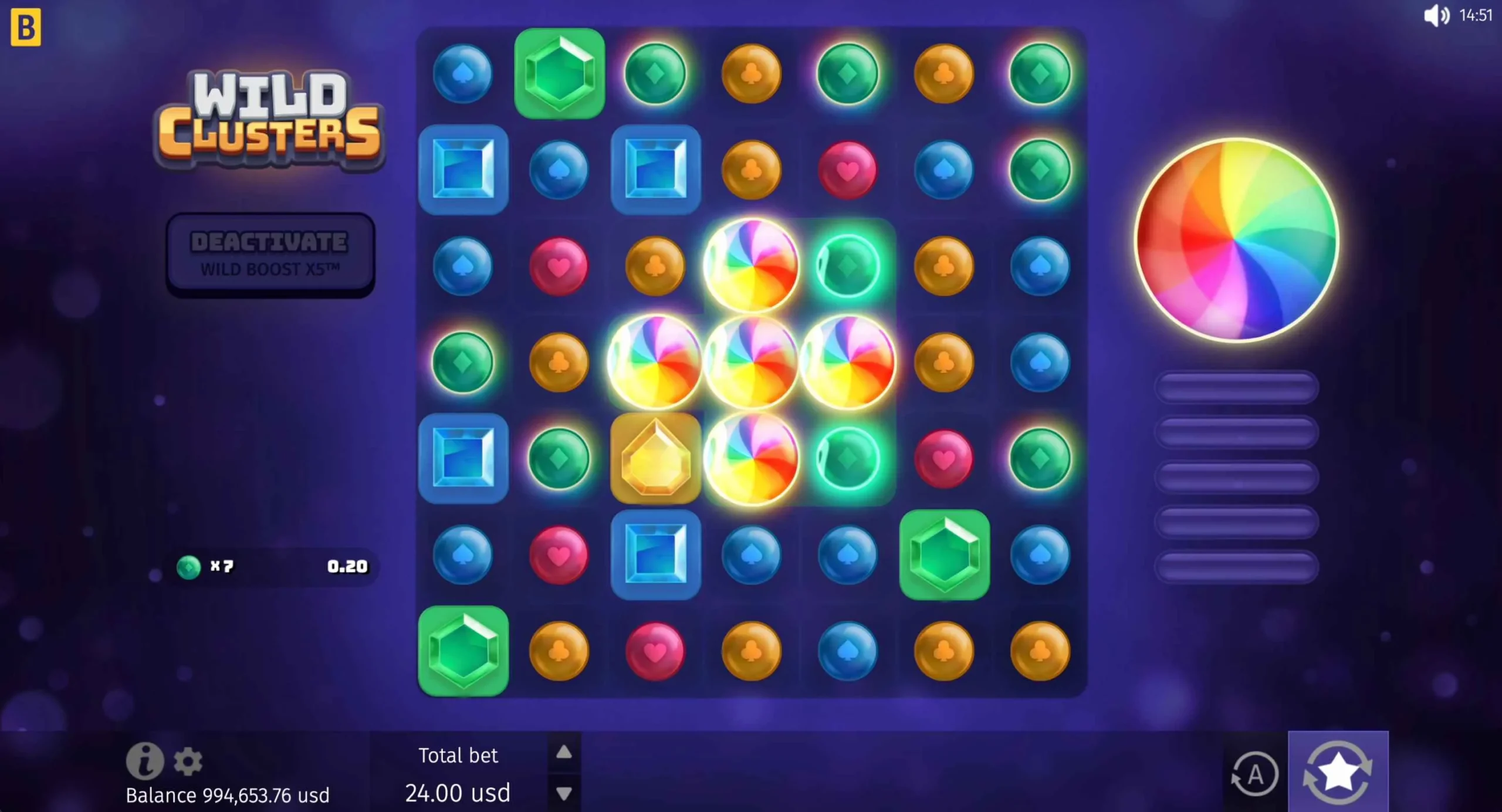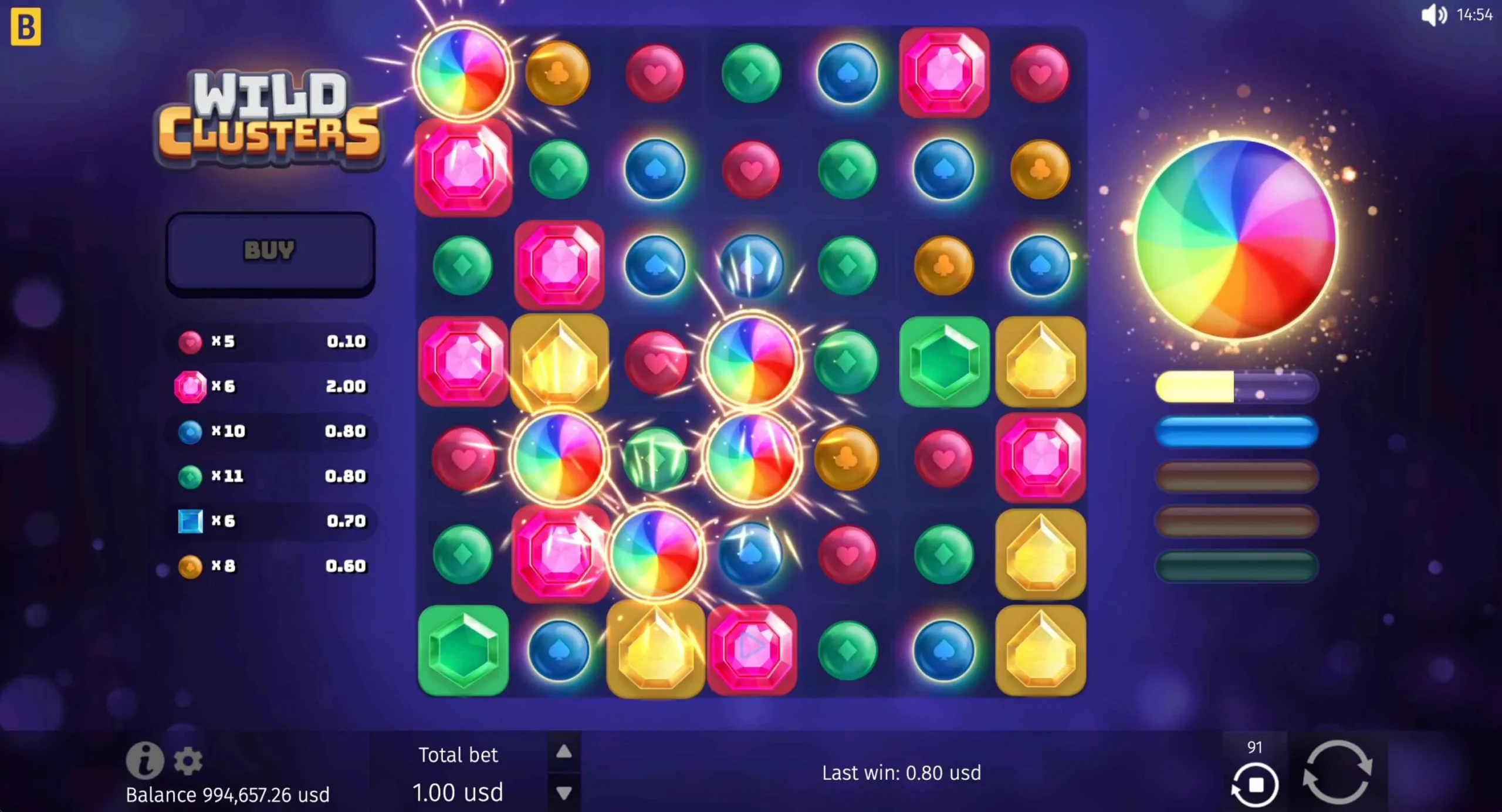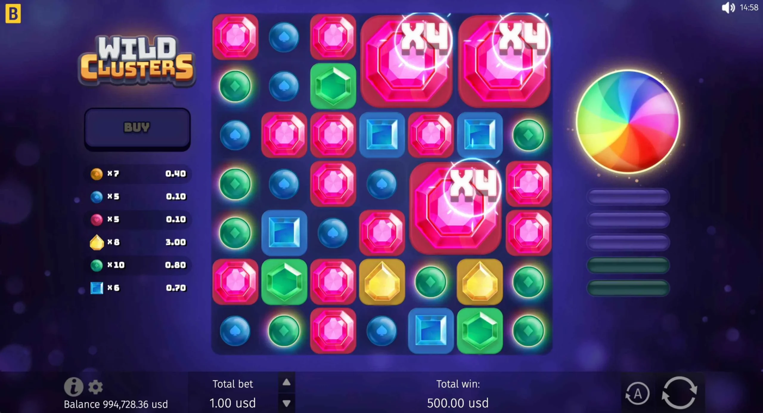 Wild Clusters offers a maximum multiplier of x5,000 of a player’s bet. The big win can be quite rewarding, depending on the player’s initial stake and feature progress.