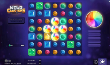 The Wild Clusters slot is a thrilling online game from BGaming featuring cluster pays, where every cluster won potentially brings you closer to a random Galaxy Feature that affects the playing field, possibly increasing your big win chances.