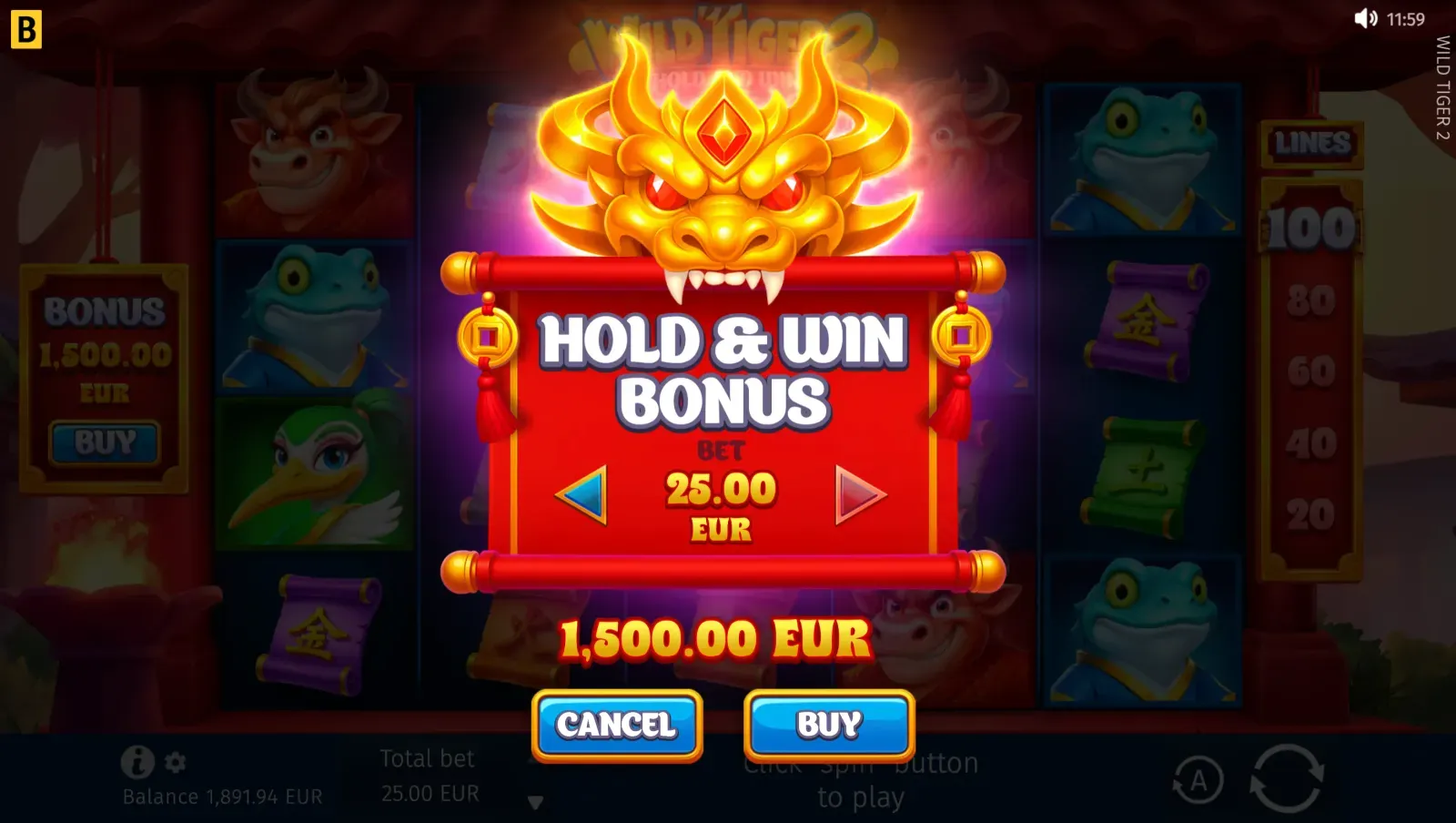 Qual é a maior vitória disponível em Wild Tiger 2?